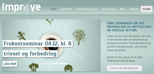 Imprve er et selskap innen mosjon, motivasjon og prestasjonutvikling. AFFY har levert design av nettsider, publiseringsløsning, kurspåmelding og nettbutikk.